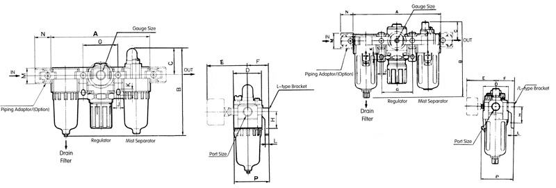 Filter out the water molecule and dust, lubricate the oil and regulate the compressed air.